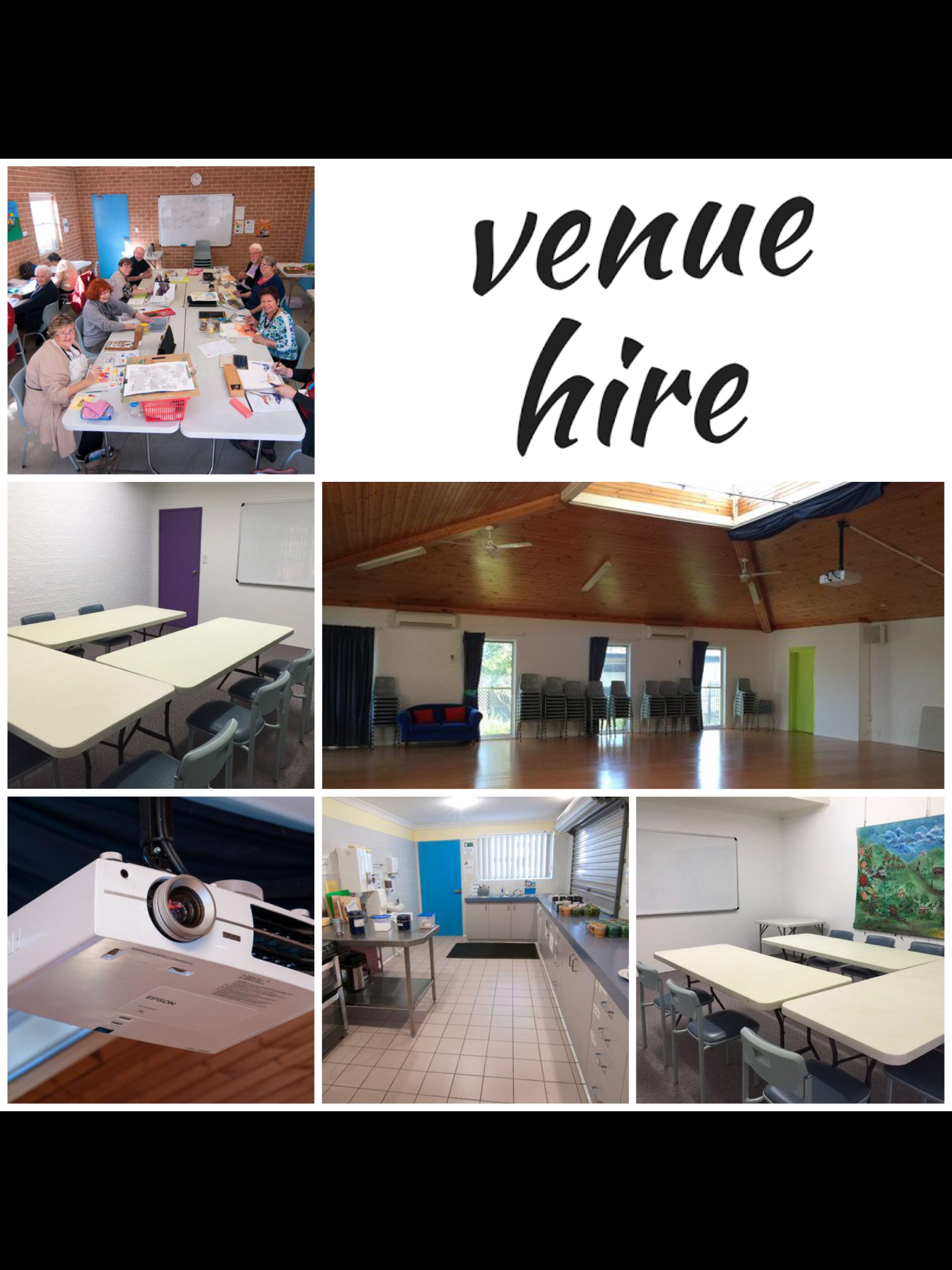 We have an Auditorium, Workshop with a Wet Room, Meeting Room, Counselling Room and a Large Kitchen available for Hire.